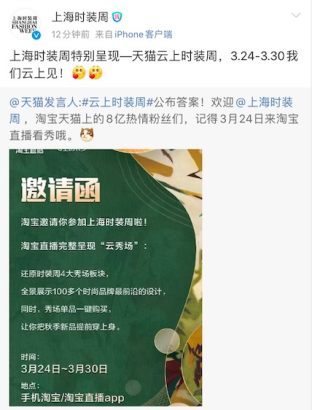 为了扶持具有原创能力的小众设计师品牌,助他们渡过难关。天猫和上海时装周紧急成立了云上时装周项目组,并决定将时装周搬上淘宝直播,运用ar实景渲染技术打造丰富多元的秀场氛围,让设计师们面向8亿淘宝天猫的活跃用户“云走秀”。