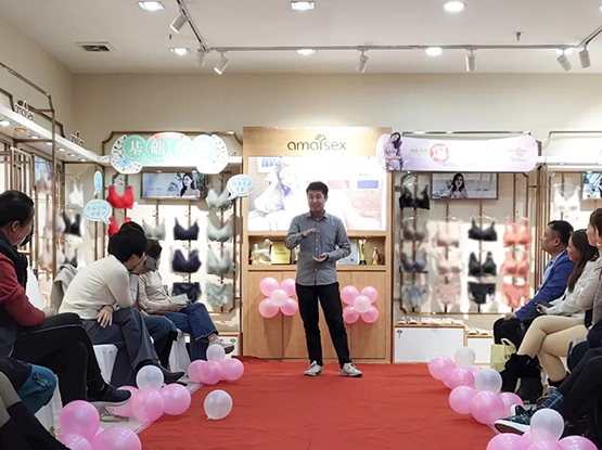 嘉怡商贸副总经理陈俊卓女士分析了现今的山东市场状态,市场不再只是一味的追求价格和品牌,质量以及服务成为消费者新的追求。而随着都市亚健康问题的席卷,健康也是全民追求的。全民养生时代也应运而生。艾梦·忆思一直秉持着“健康的养护内衣”为理念,为健康努力,提高产品质量的同时不断完善精致服务,满足市消费需求的变化。最后,陈总给大家分享了双12优惠活动的方案,助力门店双十二销售引流。