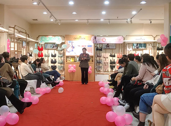 本次发布会的重中之重终于开始了,模特们穿着艾梦·忆思2020的新品,气场十足地向大家展示内衣的魅力,内衣科技感展露无遗,它以精致的面料,独特的设计以及大胆的色调,成为全场最闪耀的一颗星。李少平女士也为大家带来了精心准备的小艾2020新品卖点讲解,只有专业,才能卓越!李少平女士逐一讲解了每款产品的亮点,力争让小艾家人们对艾梦忆思内衣有着全方位的认知,以更专业的服务于消费者。